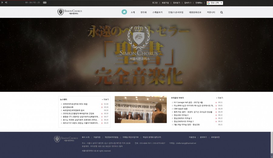 일본 데이비스컬쳐 오케스트라와 함께 협연하는 서울시몬코러스 단체의 활동 홍보 홈페이지입니다.