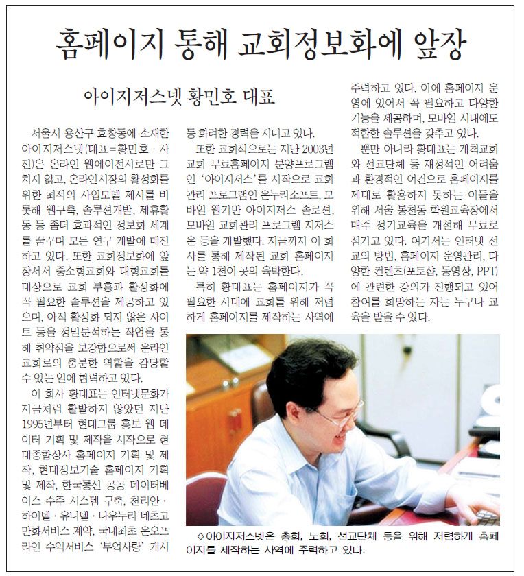 아이지저스 평신도 사역자 소개 기독교신문 2012년 10월 21일자 개제